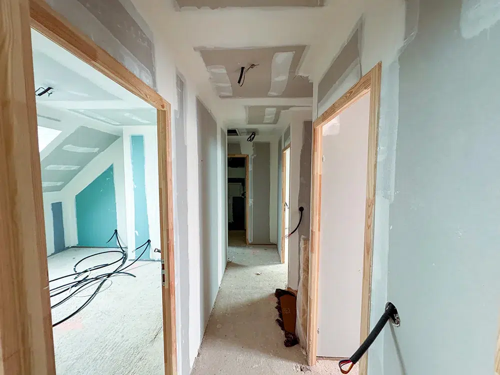 Ce programme de 28 maisons individuelles demande une coordination de travaux millimétrée. Les façades finalisées par Kilic installent déjà l’identité du projet, pendant que les couvertures réalisées par HRC ont définitivement stabilisé les volumes. À l’intérieur, les cloisons montées par Ribeiro & Jam permettent enfin d’apprécier la véritable organisation des espaces, ce qui change tout dans la perception du bâti et dans la gestion du projet immobilier.