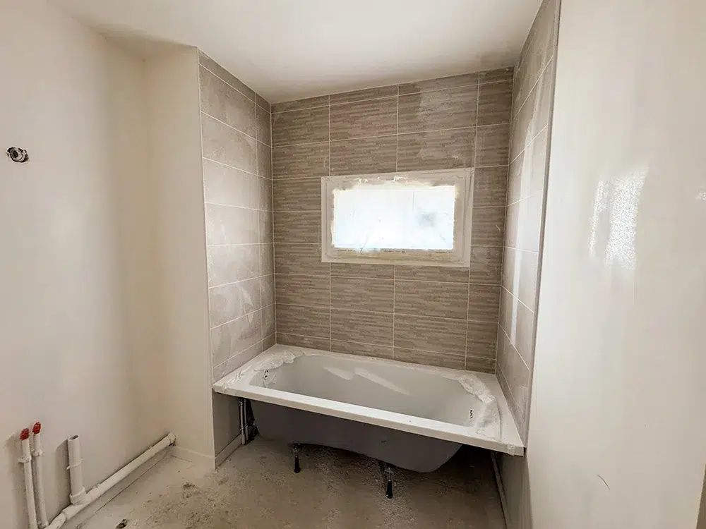 Comme souvent dans ces phases intermédiaires, plusieurs séquences s’enchaînent en parallèle : le carrelage et la faïence d’Ardeco prennent place pièce après pièce, la mise en peinture menée par EG Bâtiment progresse au rythme de l’avancement des finitions, et les menuiseries intérieures installées par Nouvelle Menuiserie du Moulin viennent fermer les volumes.